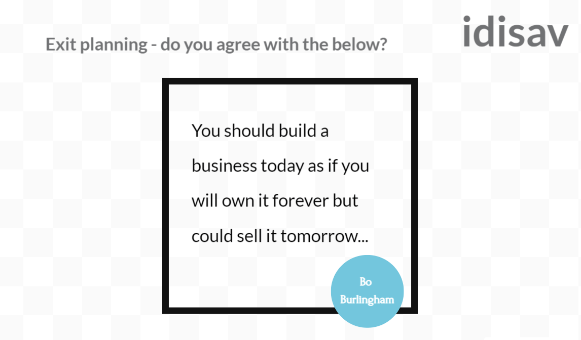 #Exit#planning, Bo Burlingham provides the great quote of “You should build a business today as if you will own it forever but could sell it tomorrow…”