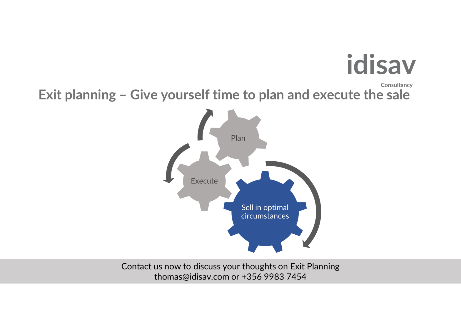 Feel free to contact idisav to discuss your exit strategy. You will be assisted by Thomas Cremona, who apart from being a qualified #accountant has undertaken the #exit process from an #entrepreneur‘s perspective with a company he had founded and successfully exited.