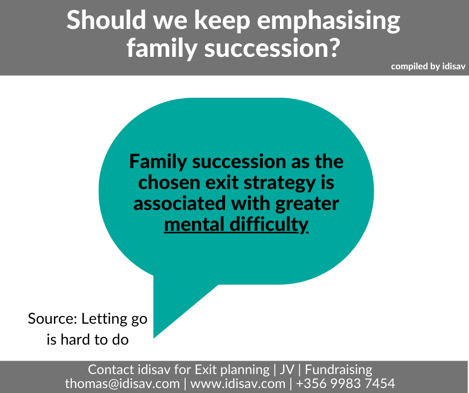 —-> incumbent entrepreneurs have doubts concerning their ability to let go when the firm remains within the family, or that