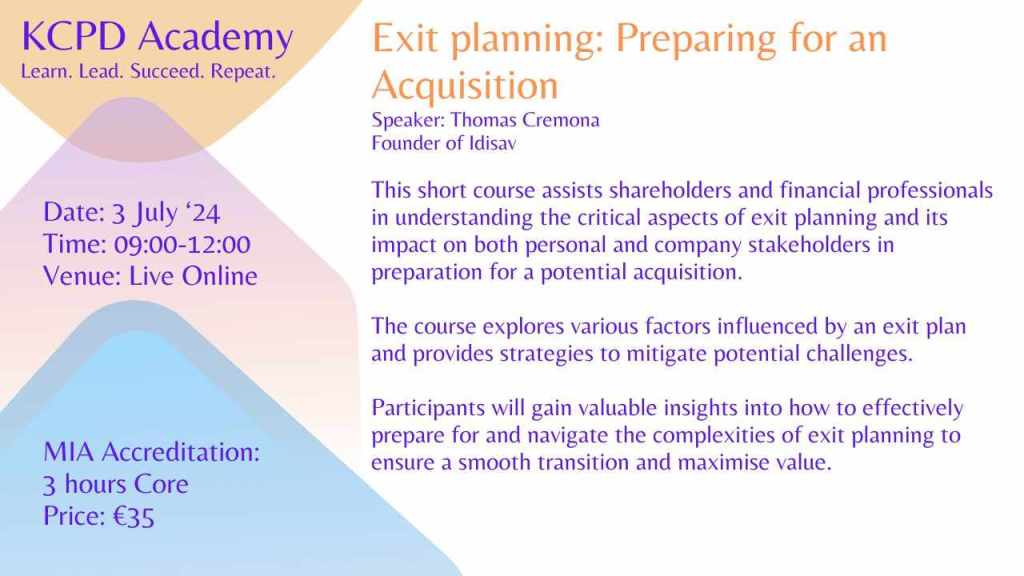 You’re in luck as I partnered with KCPD Academy to deliver a short course on preparing your company to be acquired being held 3 July 2024 at 9am.