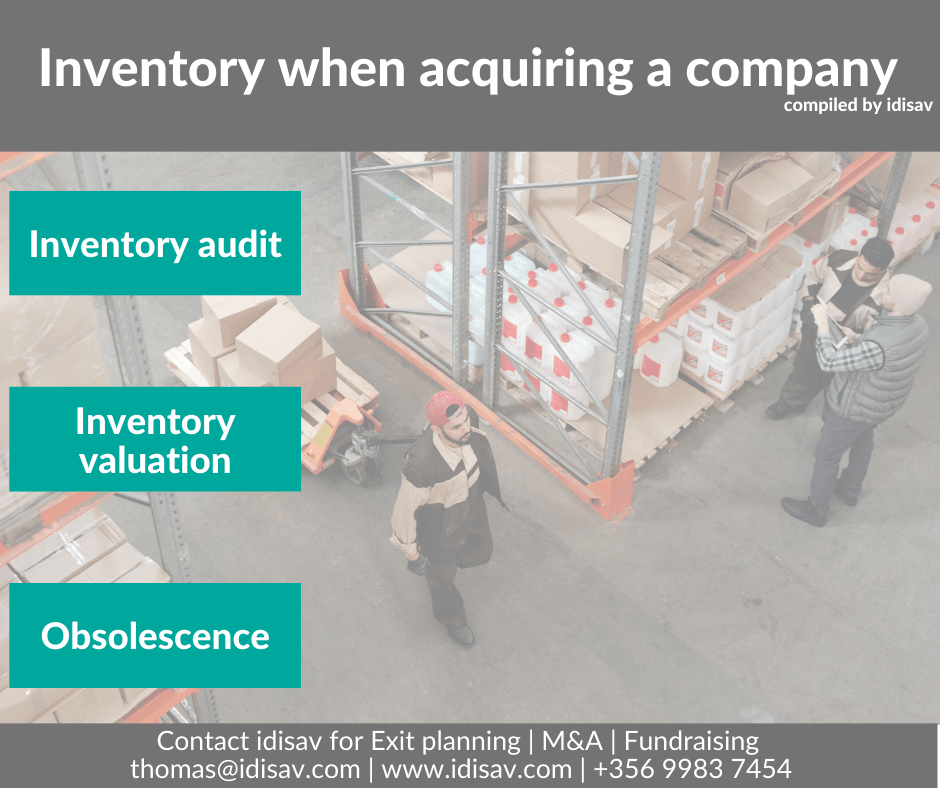 Keep in mind that a prospective acquirer is unlikely to want to purchase stock that they are not confident that they will be able to sell. Thus prior to placing your company on the market take the opportunity to undertake an inventory audit, re-value your inventory, and remove any irrelevant inventory.
