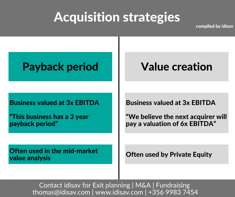 One group sees the company as something that will pay itself off over time. The other looks ahead, focusing on what the next buyer might pay for it after them.