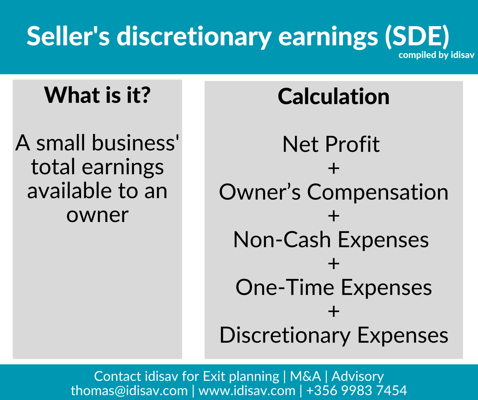In M&A, especially with owner-managed businesses, the term ‘Seller’s Discretionary Earnings’ (SDE) often comes up. It refers to all the income the owner/manager takes from the business, providing a clearer picture of its financial performance.